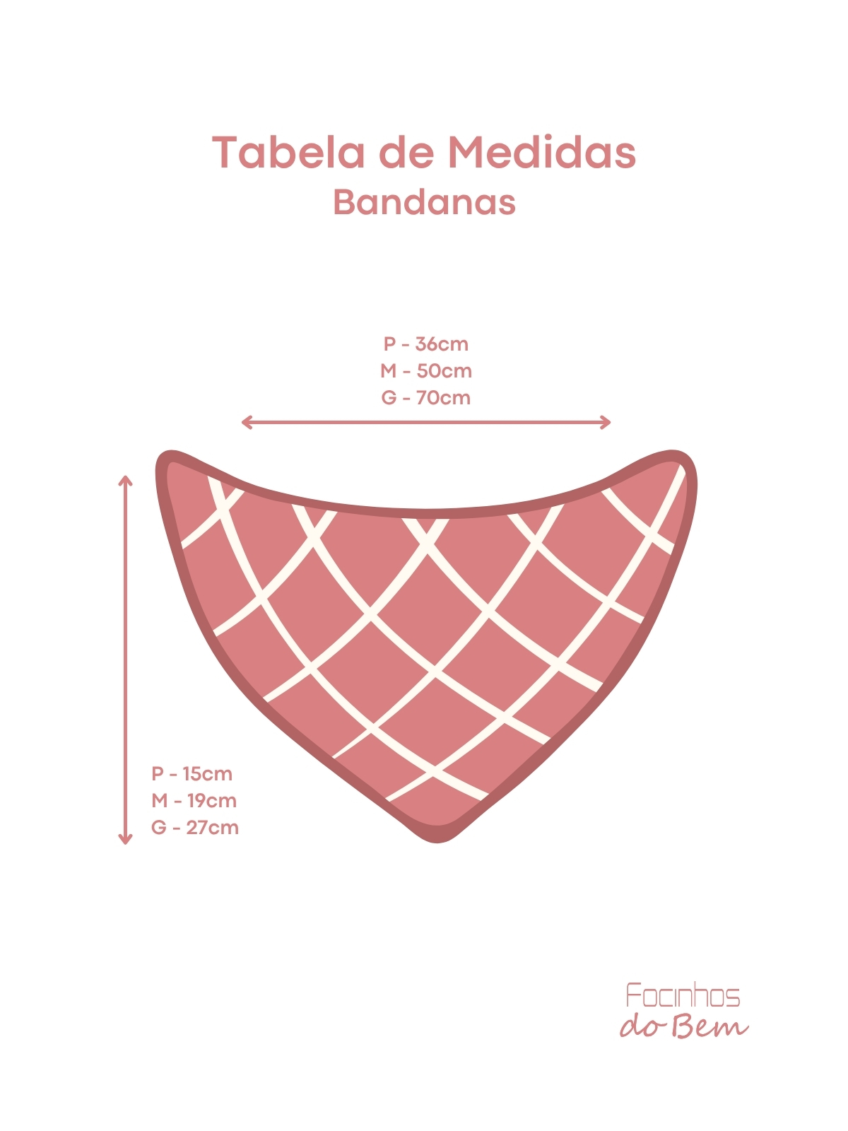 Confira a nossa tabela de medidas de bandanas. Mas ainda, você pode se basear da seguinte forma: